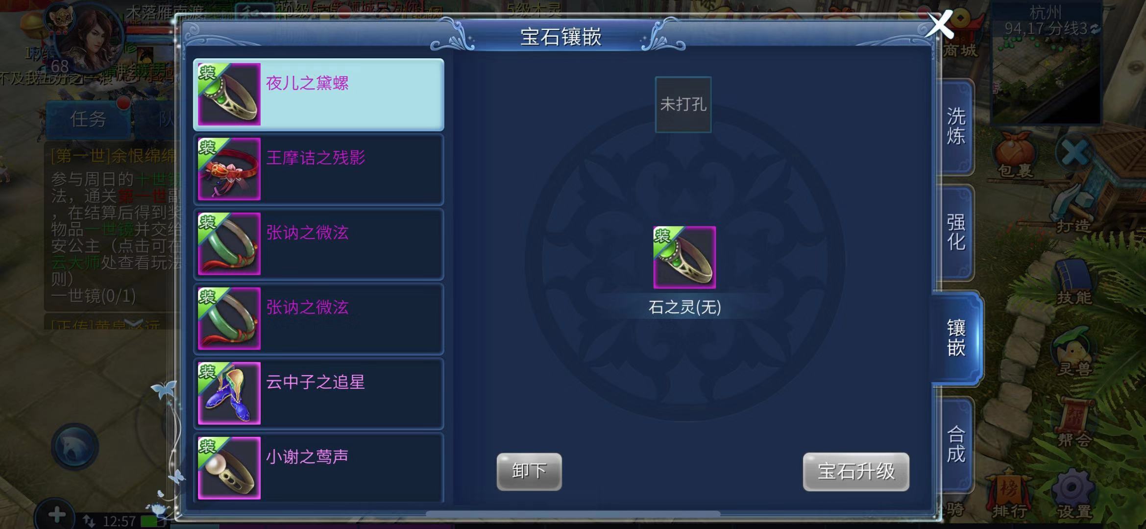 玩家提升装备幸运值的方式不止洗炼这一种,镶嵌宝石也是可行的办法,而且比反复洗炼要高效不少。玩家可以在易市花费较高的价格购买能增加幸运值的宝石,接着用金刚钻给装备打孔,把宝石镶嵌进去,这样也能提升装备的幸运值。