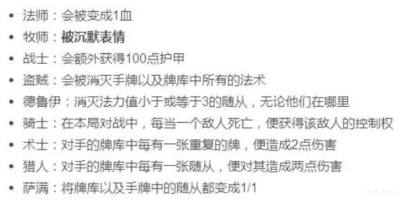 来讲下每一个职业的也许卡组和玩法:(目前卡组还不成熟期,这一些全都是比较正确打的,但也不可以确保次次都过)
