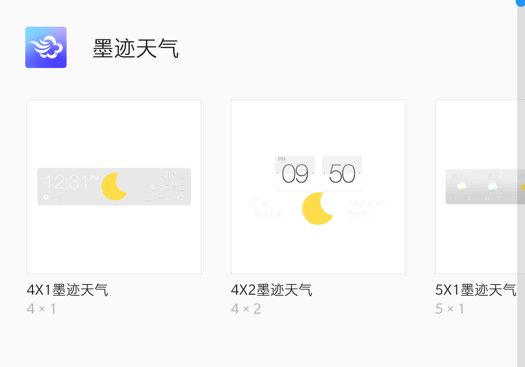 在界面里向下滑动,找到墨迹天气的插件后长按。