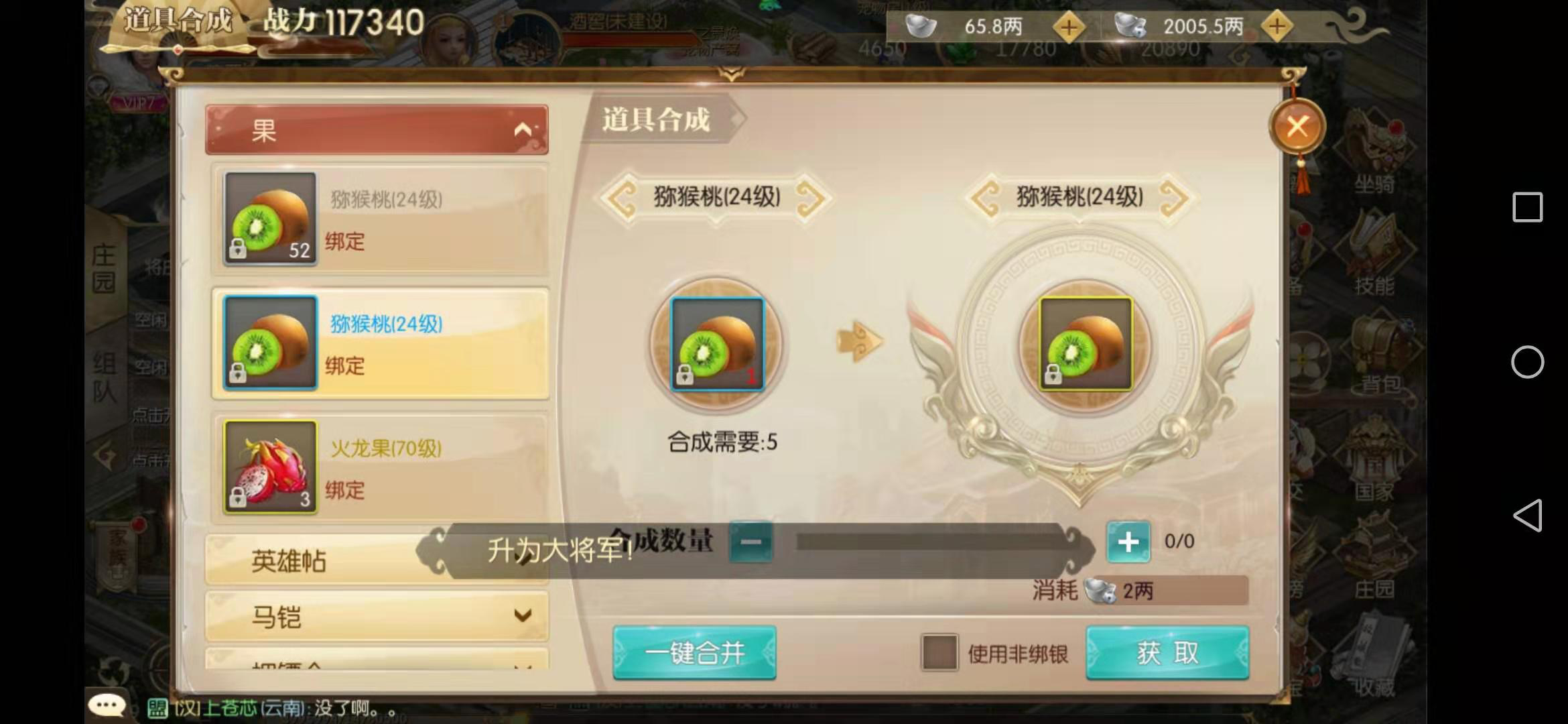 在道具合成功能中,低品质的猕猴桃可以合成为高品质的猕猴桃,这样在有限的次数内就可以尽量多的获得经验了。