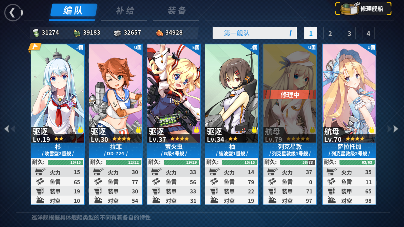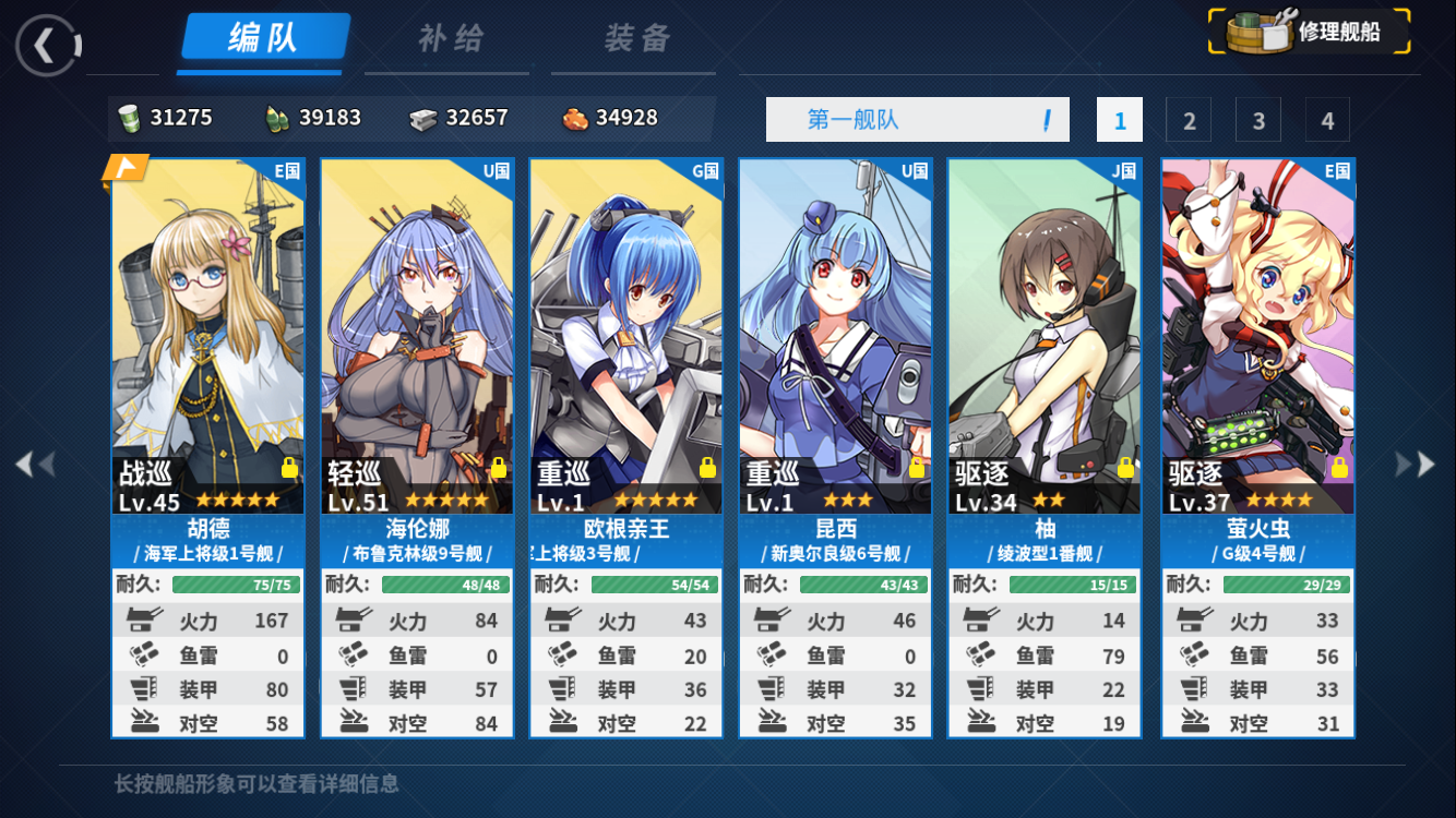 重巡的话就比较看脸了,和小船一样上旗舰位置,尽量将其火力强化下。