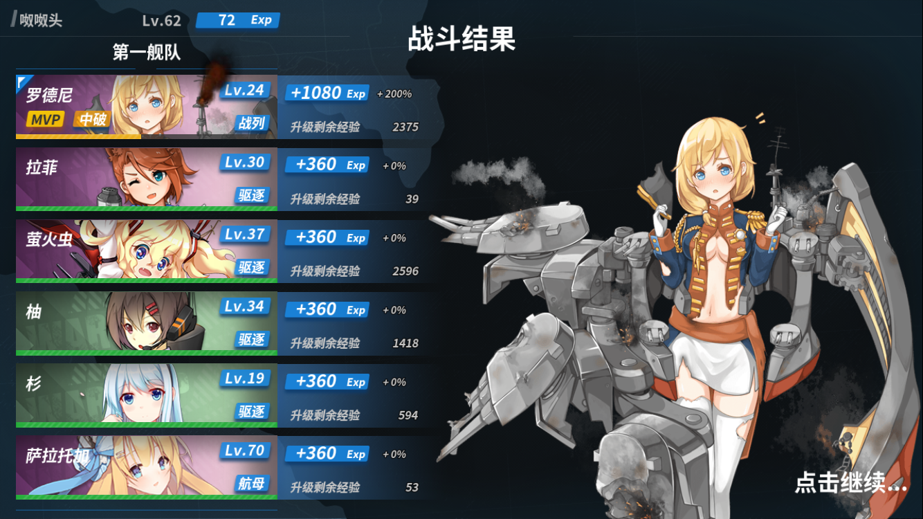 战列战巡类的练级就比较嗨皮了,他们强大的火力很容易拿到mvp,因此完全可以舰队完全可以抛弃航母轻母。