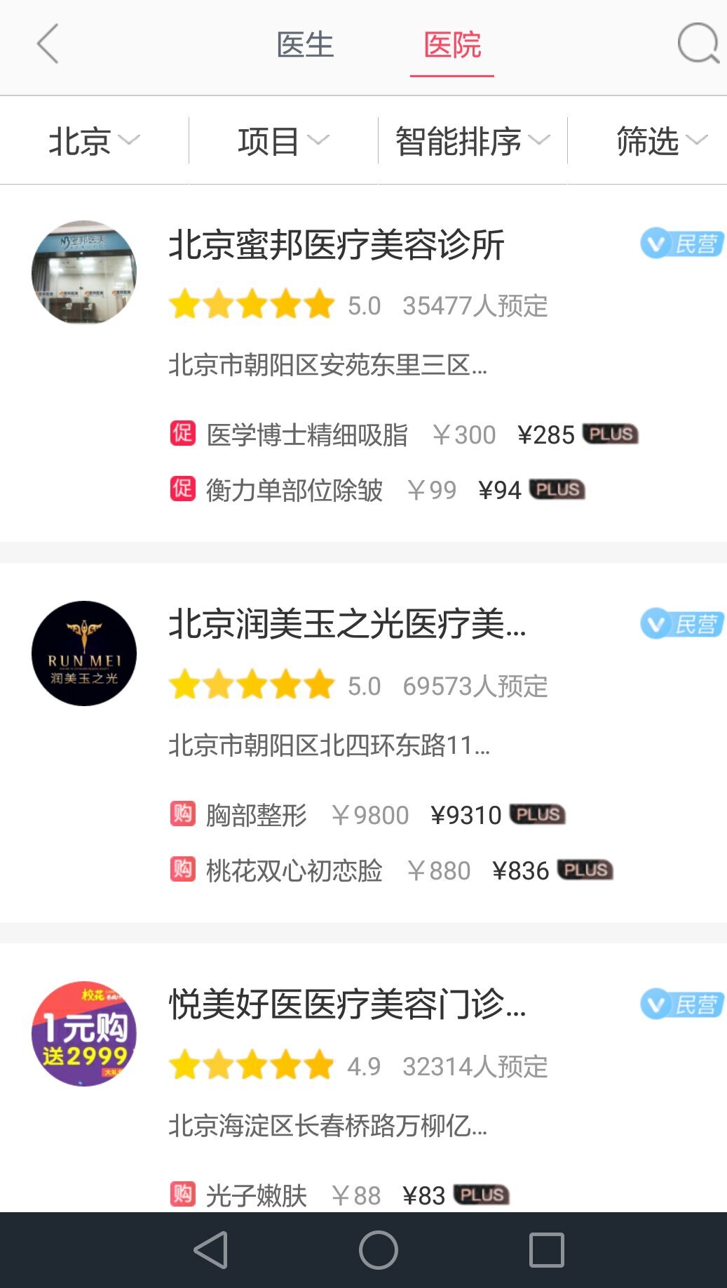 用户能够依据地区、整形项目以及医生的资质,筛选出系统所推荐的本地医生与医院,从而更深入地知晓这些机构和医生的专业水平。