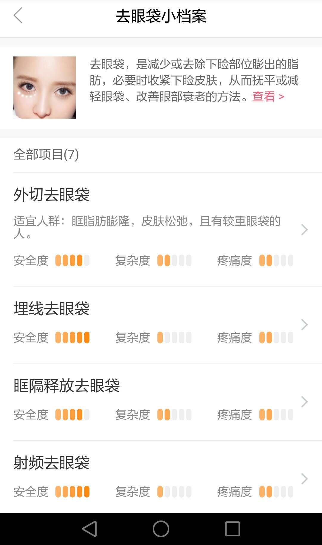 用户在首页能够找到“整形百科”板块,从中获取各类整形项目的详细科普知识,涵盖皮肤美容、眼部整形、鼻部整形、面部轮廓、胸部整形、美体塑型、牙齿美容等多个方面。