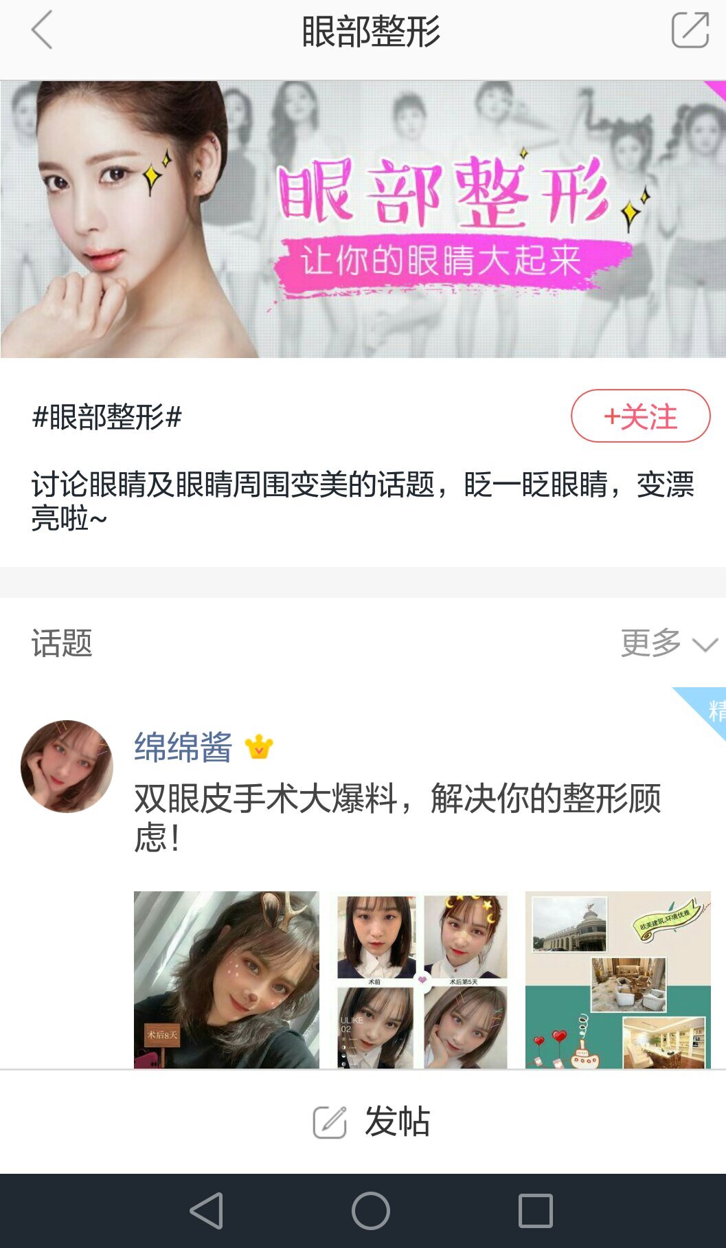 用户可以通过选择热门变美话题,发帖或者回复参与话题讨论交流。