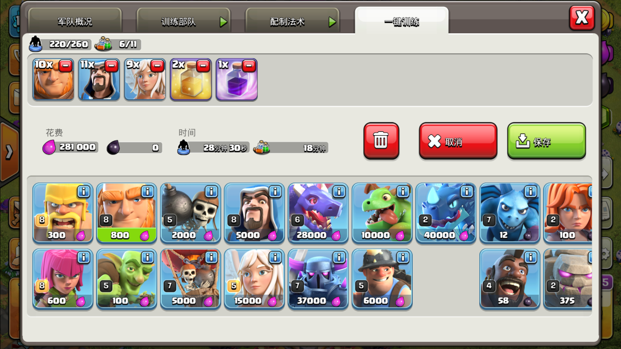 10个胖子加11个法师和3-5个天使的组合非常的好,2个治疗加一个狂暴药水的组合可以更加稳定胖子和法师的输出。