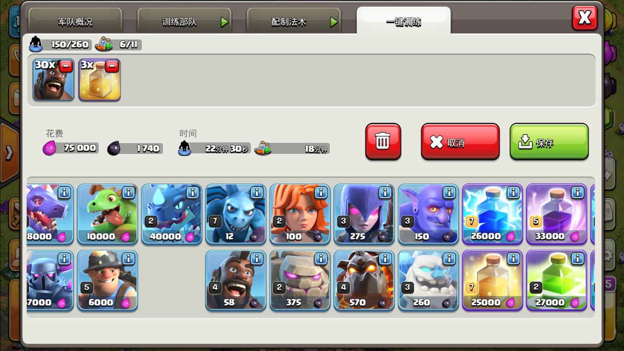 哥布林营地这一关的防空等级仅为四级,算是相当低的配置,即便采用纯空军阵容也能轻松拿下三星。具体配置可以是一只熔岩犬、两条飞龙加上二十个气球兵,药水方面则全部携带狂暴药水就行。