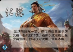 这里给大家说明一下,像仁、义这类角色所具备的技能,比如刘玄德的仁德、关云长的义绝,都能被他当作自己的技能来使用;第二个选项是通过消耗自身血量来摸牌;第三个选项则是直接丢弃一张你不需要的手牌。