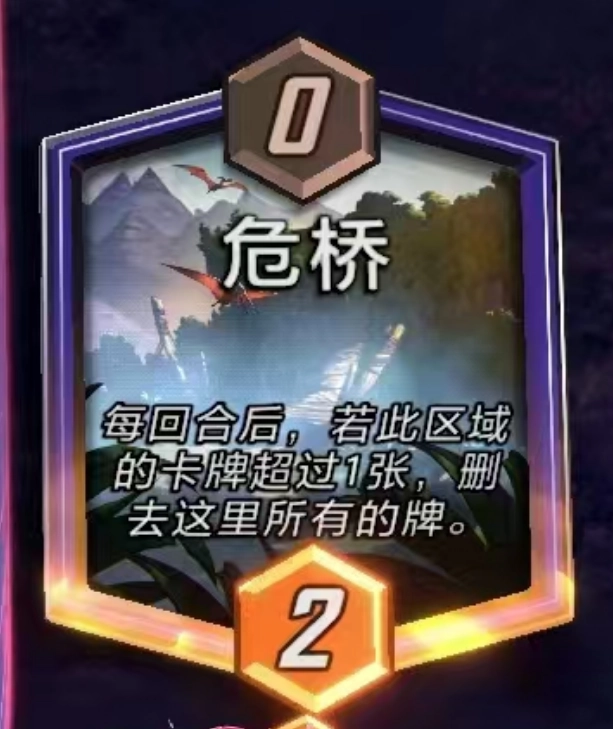 危桥规则:每个回合结束后,若该区域内的卡牌数量多于1张,那么将此处所有卡牌删除。