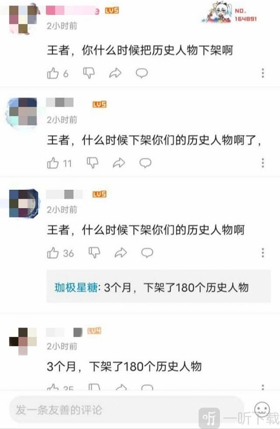 在王者荣耀官方账号的评论区内,同样涌现出大量不理智的留言。有部分FGO玩家责问王者荣耀何时会将历史人物下架,更有甚者,还嘲讽王者荣耀是“天龙人”游戏,称其高高在上,仿佛就不需要下架历史人物一般。