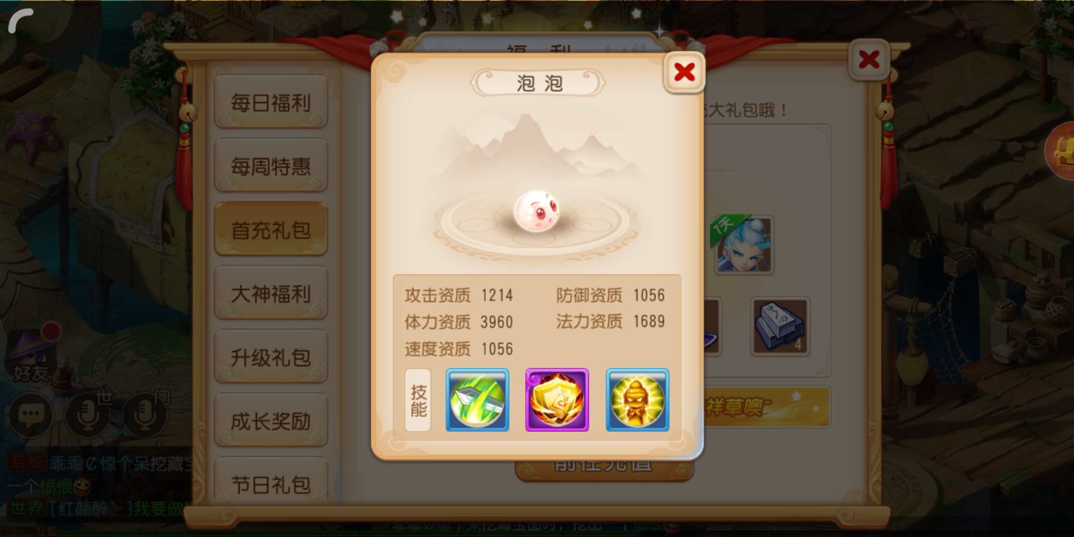 在游戏内充值任意金额的仙玉后,即可领取首充礼包,该礼包需前往主页面左上角的“福利”入口进行打开领取。