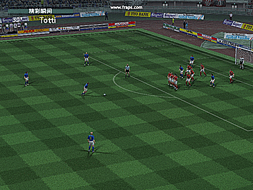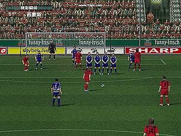 在实况足球的任意球场景中,门将一般会站在人墙的另一侧。要是能把球踢向球门角度比较刁钻的位置,门将往往难以扑救。不过也不能完全排除特殊情况,我就碰到过门将扑出下图那种角度刁钻的射门。掌握了这个技巧,就算没能直接破门,对方门将通常也会将球扑出,这样就能获得角球机会。需要说明的是,这个任意球技巧不太适用于30米外的任意球,30米外对能力要求较高,此时旋转弧度很难控制。如果距离在35米左右,就不建议直接射门了。
