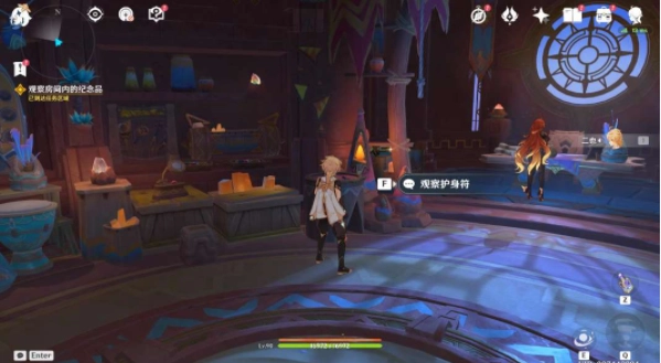 2、接着朝西北方向行进,抵达下图所示位置后,留意房间里的纪念品,通过交互方式仔细查看护身符。