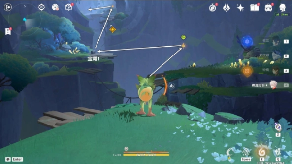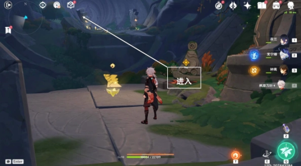 4、接着朝着圣火竞技场东南方向的锚点进发,抵达后前往山崖下方的秘境所在之处。