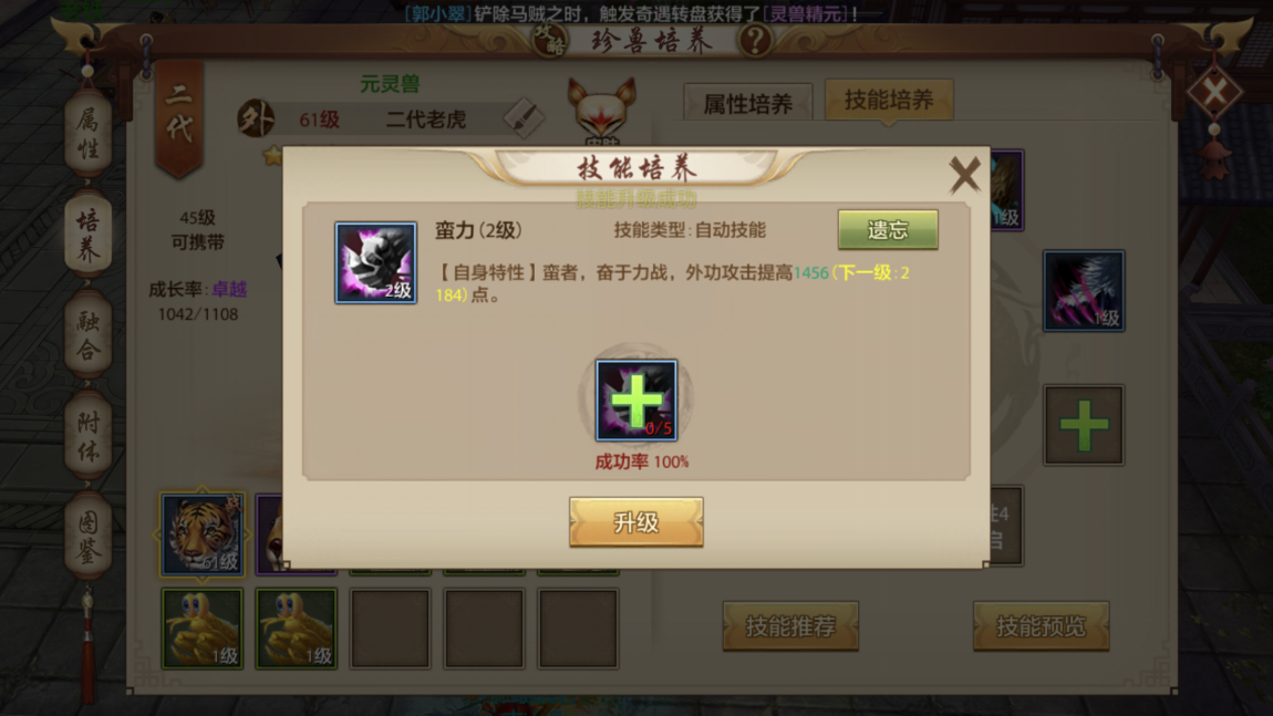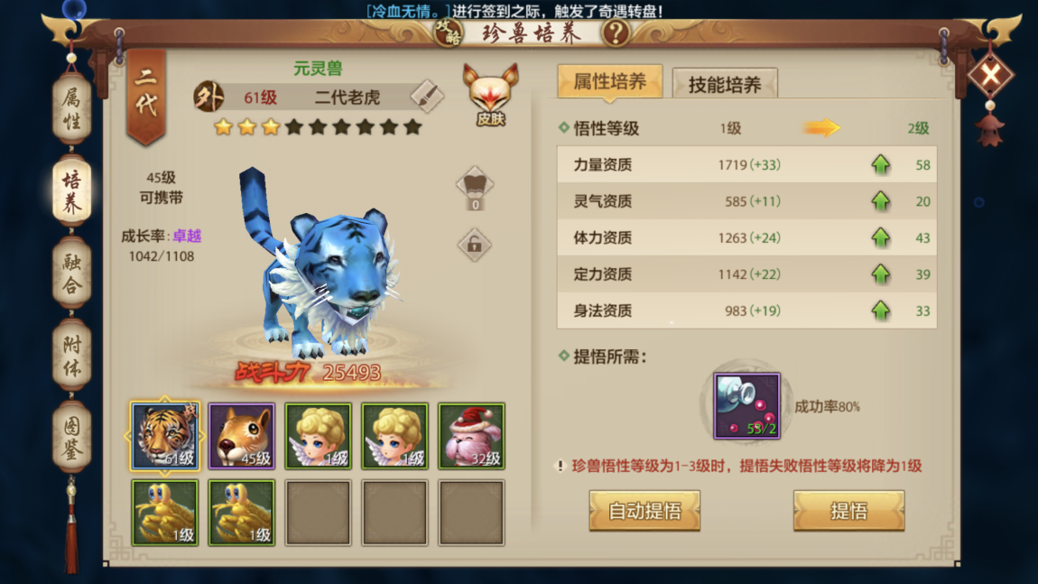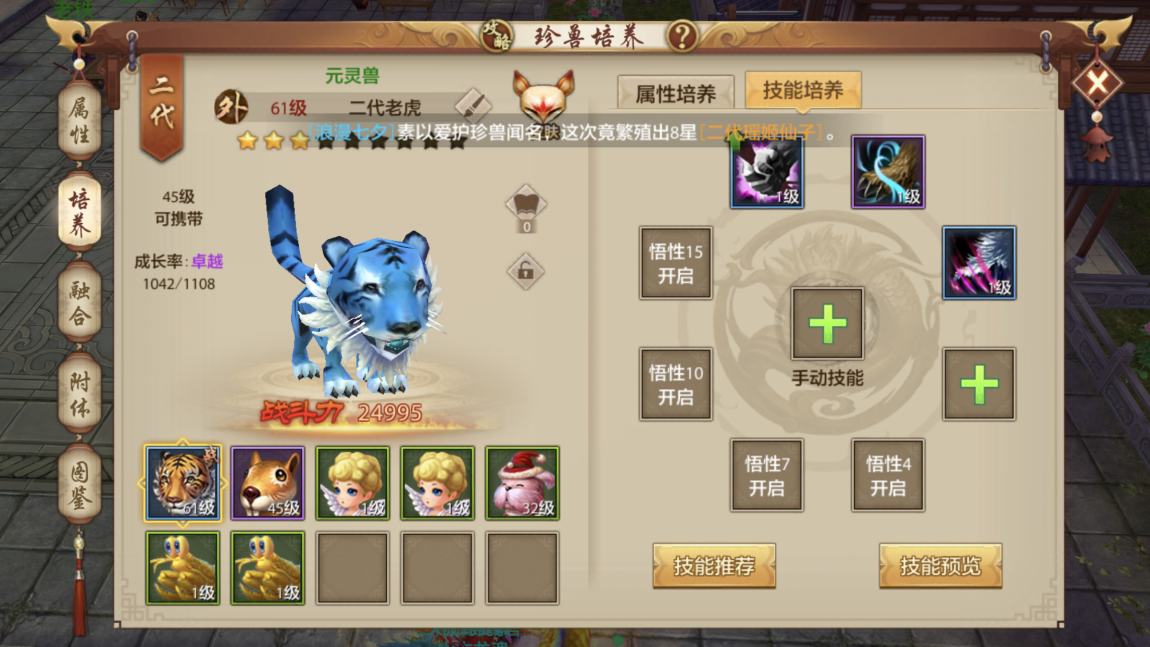 珍兽宝宝没办法通过学习技能来提高悟性,不过能够借助培养来提升它的成长率。