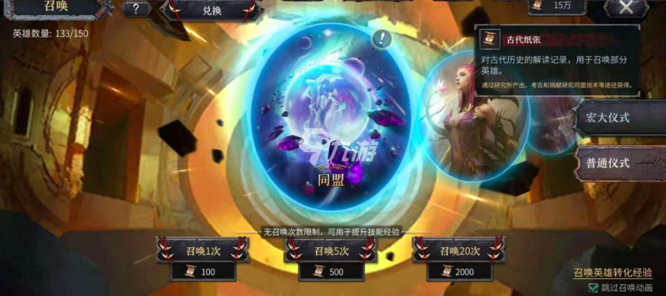 当所有英雄都达到十级后,把兵力补充完整就可以去攻打古塔了。古塔采用的是连续战斗模式,所以要留意及时补充兵力。攻打古塔能获得古代纸张,这种道具可用于抽取普通卡包,也能用来升级英雄技能。