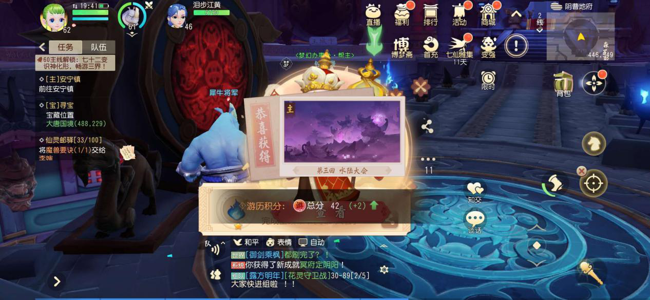 第六步,击败龙王后会触发一个拼图任务,每个拼图零件都支持360°自由旋转,只要零件的位置和角度都调整到合适状态,将其拖入对应的缺口即可完成拼接。拼图完成后,前往寻找崔判官,到这里40级主线任务便宣告结束,玩家能在该任务流程中获取丰厚的经验奖励。