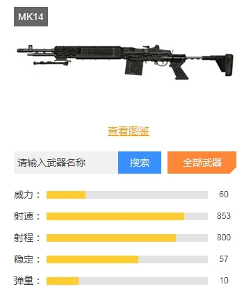 这款连狙在同类型武器中,伤害方面略低于MK14,不过其他各项属性与MK14相比并没有明显差异。
