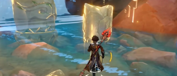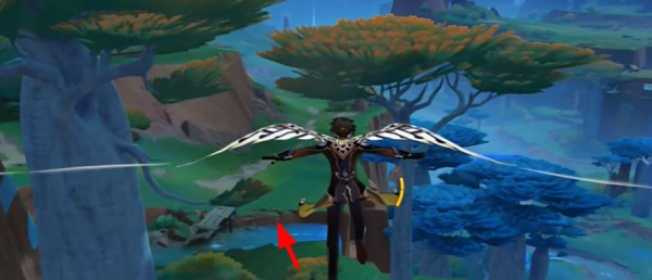 3、玩家抵达瀑布后,能在其下方看到一处闪光点。