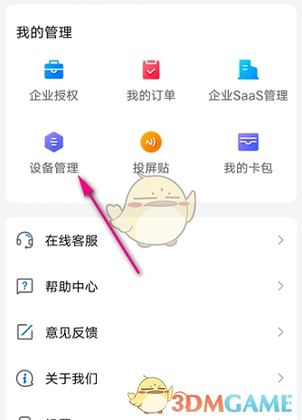 2. 进入“我的”界面,查找并点击“设备管理”。