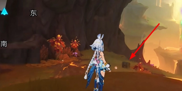 4、接着往前行进到山坡处,看向左下角(即指引点位的左侧)