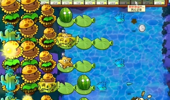 7、在某一列补全寒冰仙人掌,接着在右侧增添多个西瓜和坚果,如此就能通关。