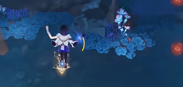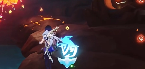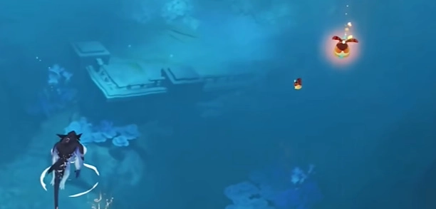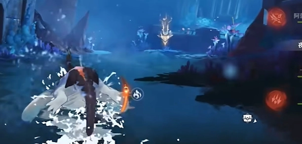4、抵达目的地后,切换为角色形态,接着攻击下图所示位置,这会致使水位下降。