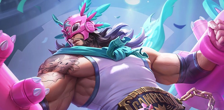 2、以摔角手为灵感进行新皮肤设计,为廉颇打造了全新形象,整体色调以粉色为主。