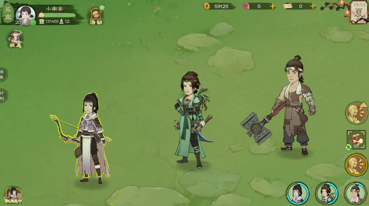 当前游戏中有六位勇士,分别为乔河、陶小青、李绫儿、孟和、韩菲以及慕容婉,他们各自擅长的方向有所差异。