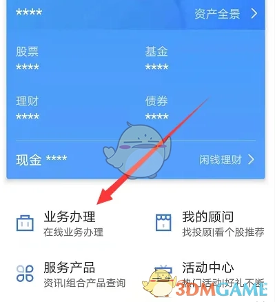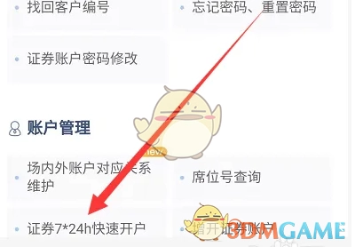 2、接下来点击“业务办理”,随后点击“证券7*24H快速开户”