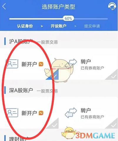 6、重新确认身份信息,点击“下一步”,接着勾选沪A与深A,均选择新开户。
