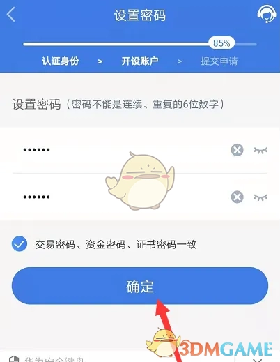 8、点击“确定继续开户”,然后输入密码点击“确定”