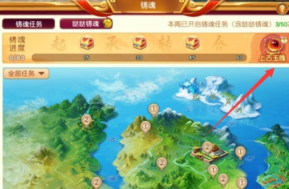 3、完成60个任务后,即可获取【上古玉魄】,但任务所给予的【上古玉魄】类型为随机。