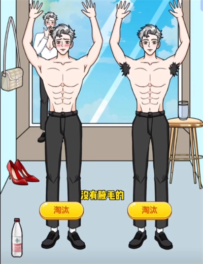 1. 把衣服脱掉后点击【身体】,将没有腋毛的男性淘汰。