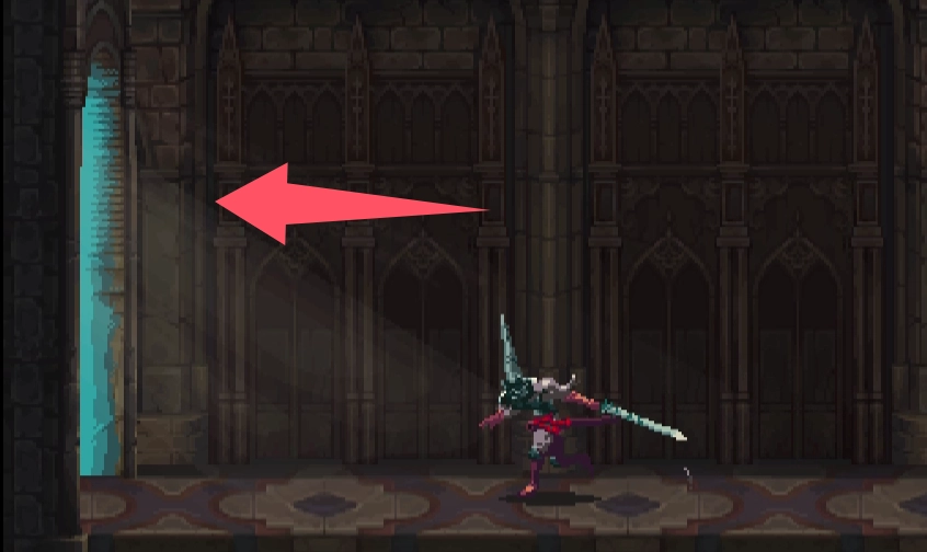 ②先跳到香炉下方的平台,接着往左跳,开启通往存档点的捷径。要是血量不足,就回去存档,不过之后仍需回到捷径所在位置。