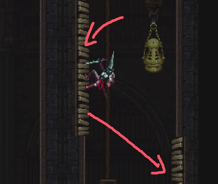 ③向右跳下来,启动回存档点的捷径。