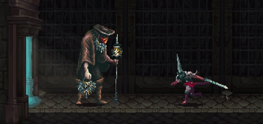 ④在存档点房继续向左行进,会碰到守夜人。守夜人埋怨此地太过吵闹,遂给主角安排了一个任务,要求主角去找出并解决噪音的源头。接受任务之后,从守夜人身后的门离开。