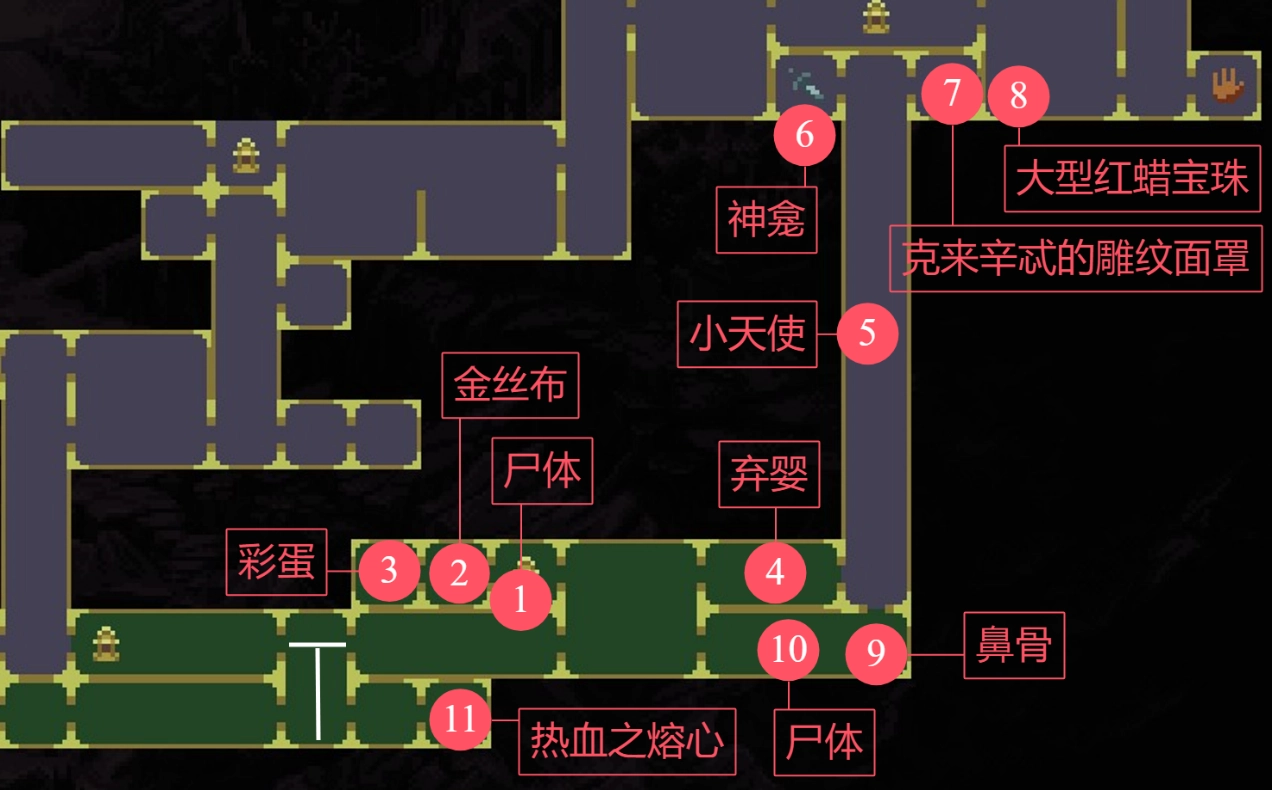 ⑪继续向左走到房间尽头,打一下机关,开启回存档点的捷径。