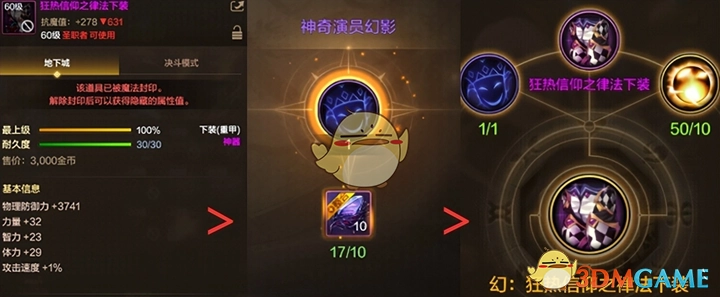 首先,挑选一件你打算洗特性的异界装备部位。随后,利用10个混沌结晶制作出神奇演员幻影,并且再借助10个史诗灵魂将这件异界装备提升为史诗装备。在解封的时候会随机获取一条大词条,要是这件装备是防具,鉴于它和其他装备同属60级史诗,直接进行继承即可。