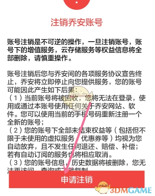 5、进入账号注销页面,选中“申请注销”选项。