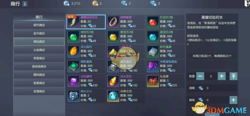 在商行里,能够使用过关钻石来购买各类强力神宠,这些宠物均由其他玩家上架。要是碰到资质比较高的宠物,建议在购买之前慎重思考一下。