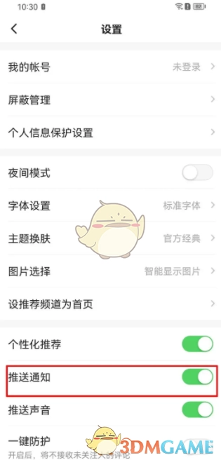 4、进入设置页面,把推送通知功能关闭就行。