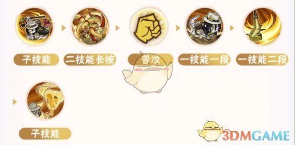 开场可先轻按二技能作为起始动作,当对手使用替身时,借助一技能第一段来提高移动速度,通过走位躲避敌人的攻击。在奥义点足够的情况下,能够释放子技能与对手拉开间距,之后再次轻按二技能重新起手。