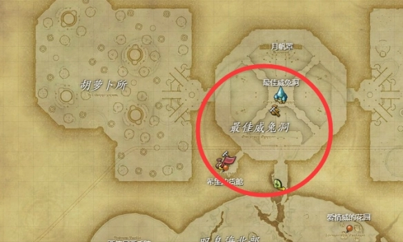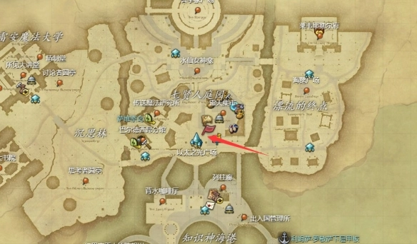 4、完成上述任务后,可前往旧萨雷安下图所示位置,寻找一个名为梦明威的NPC。