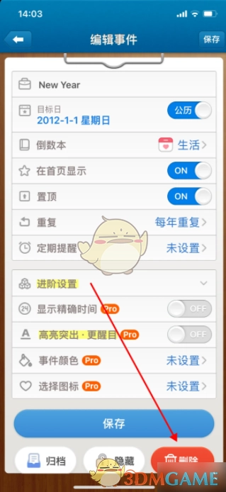 1. 在倒数日Days Matter这款软件中,点击事件栏里你想要删除的事件。