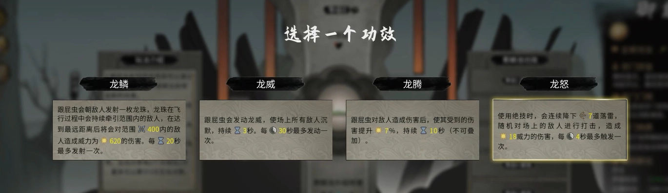首先要知道,御龙山庄可不是那种轻易就能碰到的宗门。若想让这个宗门在游戏中生成,你得创建新的存档,并且选择先天气运“龙祖灵息”才行。御龙山庄是个极具典型性的门派,单从名字就能看出,它和“龙”脱不了干系,而真正令玩家着迷之处,就在于其独特的化龙玩法。