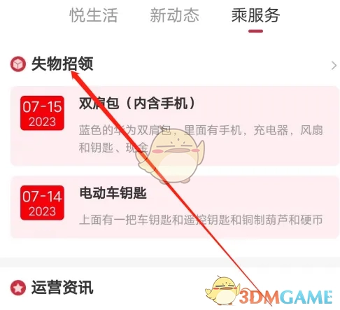 3、点击“失物招领”选项,即可进行查看。