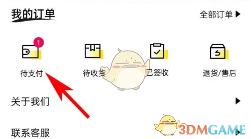 2. 进入“我的”页面,点击“待付款”按键。