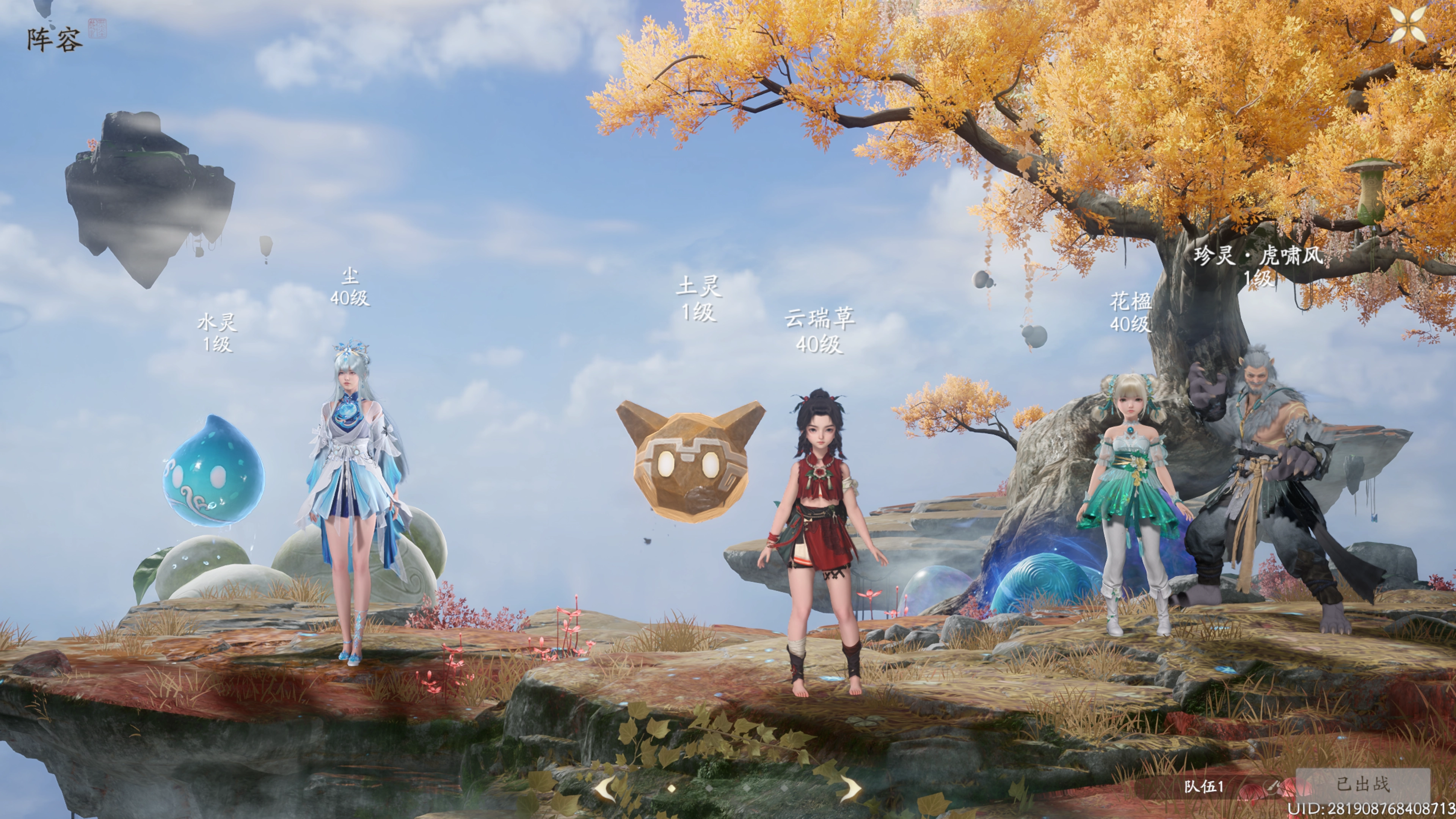 队伍成员:尘(水/输出)+云瑞草(土/破灵)+花楹(风/生存)