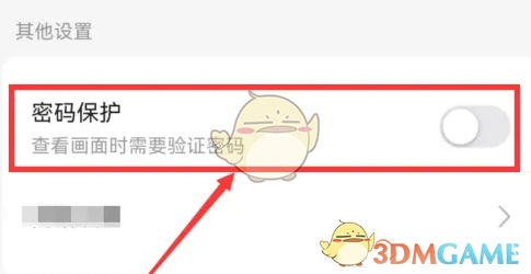 3、跳转到相应页面,找到“密码保护”选项——点击开启滑动按钮,随后设置密码即可完成操作。
